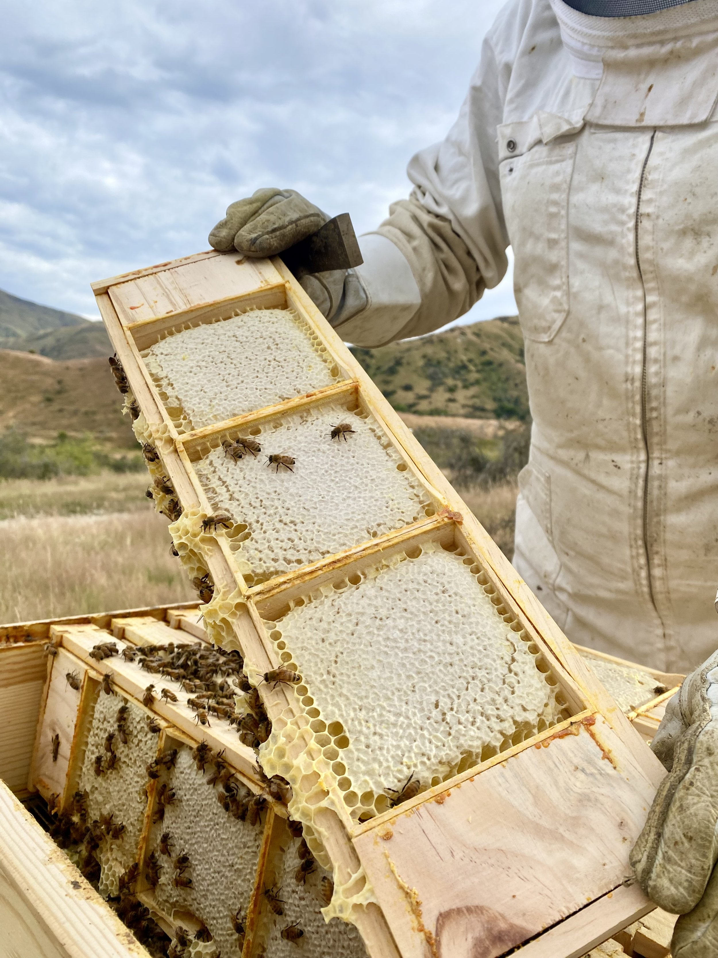 It’s a Clover Blend, with our bees primarily foraging on the White Clover flowers in our pastures. However, you’ll also experience unique flavors from other flora found throughout the Cardrona Valley, including Vipers Bugloss (Borage), Willow, Matagouri, and occasionally small amounts of Manuka and Kanuka. These native and introduced plant species contribute to our honeys gorgeous golden color and its sweet yet tangy aroma. While our hives remain in the same locations, each season brings slightly different harvests—honey is much like wine in that regard!